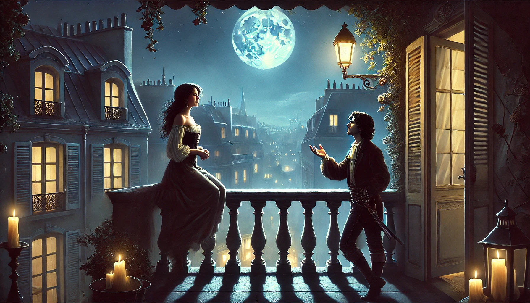 Rox­ane reap­pears on her bal­cony, and Cyra­no, through his impas­sioned words, trans­forms the con­ver­sa­tion from play­ful ban­ter into some­thing deeply emo­tion­al. His poet­ic elo­quence turns the notion of a kiss from a sim­ple ges­ture into a pro­found expres­sion of affec­tion. Cyra­no describes the kiss not as a mere phys­i­cal act but as a cul­mi­na­tion of the emo­tion­al con­nec­tion between Chris­t­ian and Rox­ane, a brief but pow­er­ful moment of inti­ma­cy under the qui­et Parisian night sky.