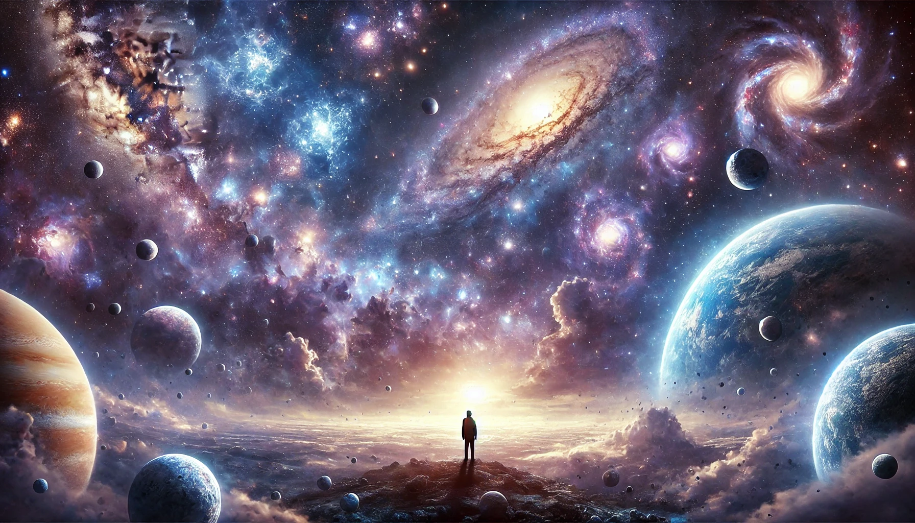 Expand­ing fur­ther, the nar­ra­tive intro­duces Ves­ta, an aster­oid inhab­it­ed by tiny life forms, to illus­trate the vast diver­si­ty of life in the uni­verse. The chap­ter makes an impor­tant point that size and com­plex­i­ty are rel­a­tive in the cos­mos, with life exist­ing on a broad spec­trum, from micro­scop­ic organ­isms to poten­tial­ly intel­li­gent beings on dis­tant plan­ets. It con­nects this sci­en­tif­ic view with a spir­i­tu­al per­spec­tive, sug­gest­ing that the mate­r­i­al world we observe is but a reflec­tion of a high­er, spir­i­tu­al real­i­ty. Through this lens, the uni­verse becomes not just a col­lec­tion of phys­i­cal mat­ter but a liv­ing, breath­ing organ­ism guid­ed by divine law and order. The chap­ter weaves togeth­er astron­o­my, phi­los­o­phy, and spir­i­tu­al­i­ty to pro­pose a holis­tic under­stand­ing of the uni­verse, rein­forc­ing the idea that the forces that gov­ern life are uni­ver­sal, cre­at­ing a har­mo­ny that tran­scends the phys­i­cal bound­aries of space.